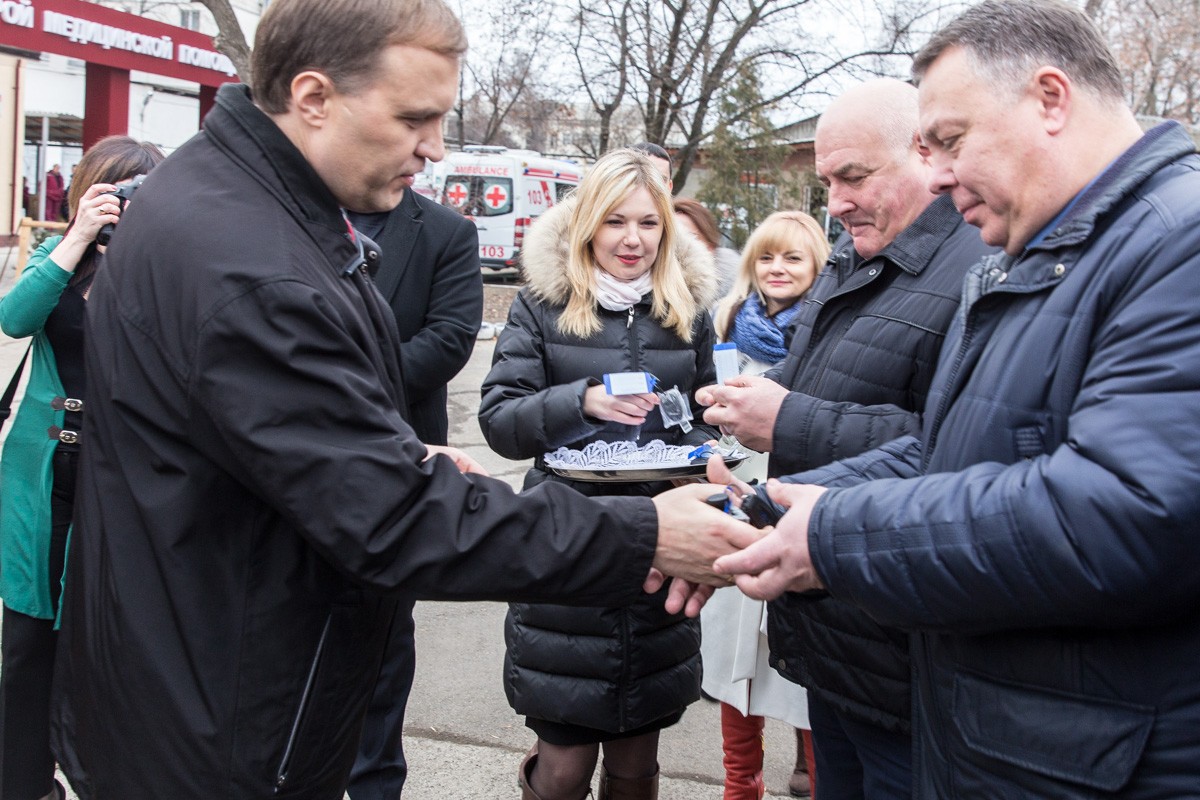 Новые автомобили марки «Форд» были собраны на территории России. Они укомплектованы современным медицинским оборудованием: в каждой машине установлен дефибриллятор, кардиограф, аппарат для искусственной вентиляции лёгких. Автомобили закуплены по программе приобретения нового медицинского оборудования, финансируемой за счёт поступлений от единого социального налога. Напомним, что с 2013 года работодатели отчисляют на эти цели сумму, равную 1% от зарплаты своих сотрудников.