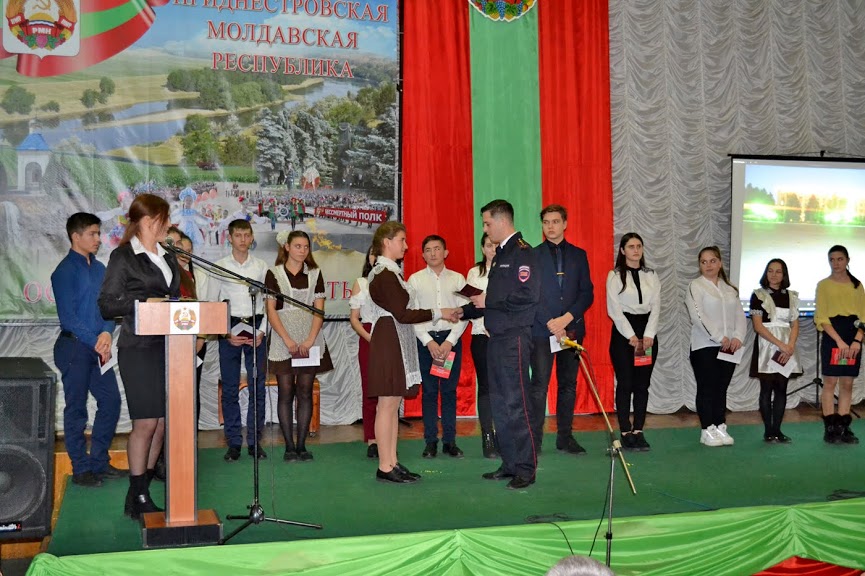 Начальник паспортного отделения Григориопольского РОВД МВД ПМР Станислав Затыка пожелал ребятам с уважением относиться к паспорту, любить и гордиться своей Родиной, стать достойными гражданами страны, стать гордостью своих родителей и не бояться ставить перед собой высокие цели.