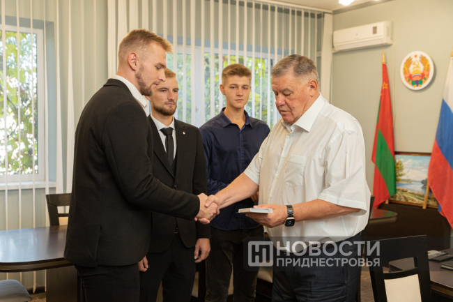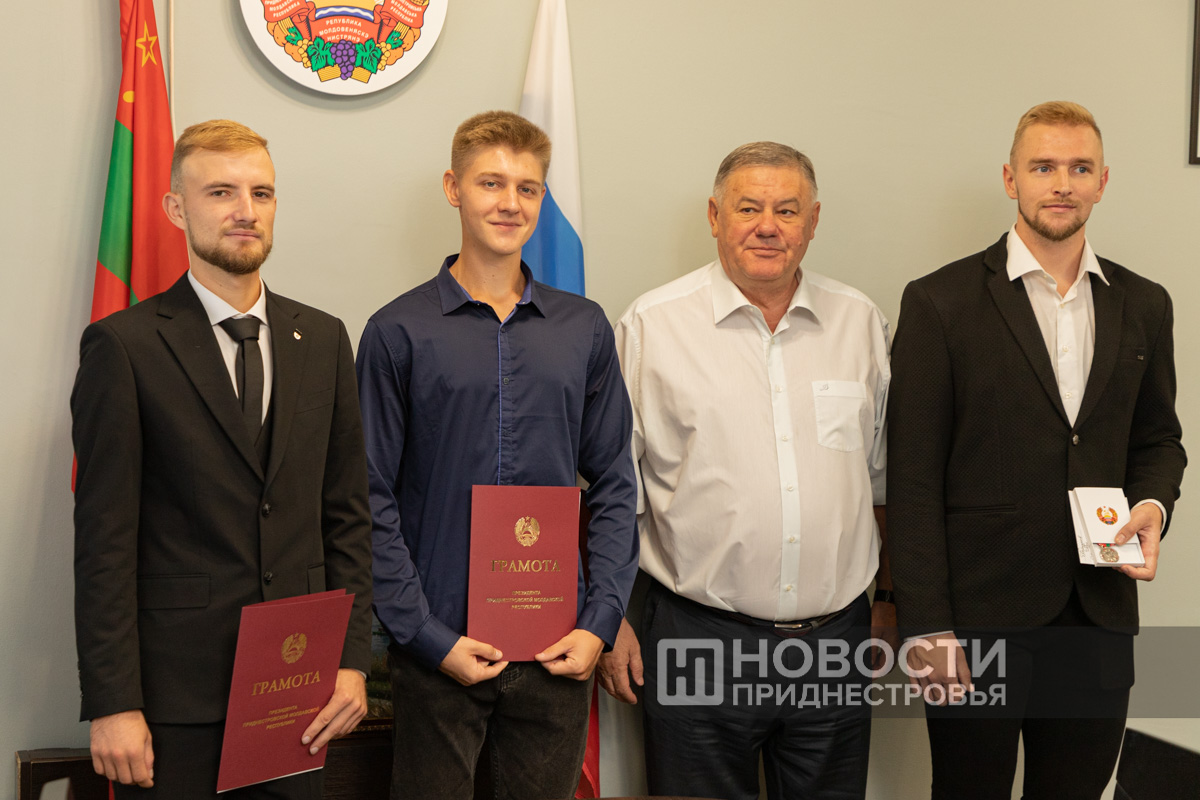 Грамоты Президента ПМР вручили спортсменам-инструкторам Республиканского центра олимпийской подготовки Роману Думанскому, Дмитрию Зинченко и Никиту Наумчуку. Также грамоту получил Иван Епишин - спортсмен СДЮШОР гребли и стрельбы.