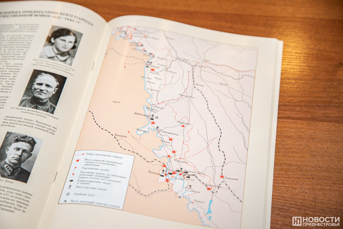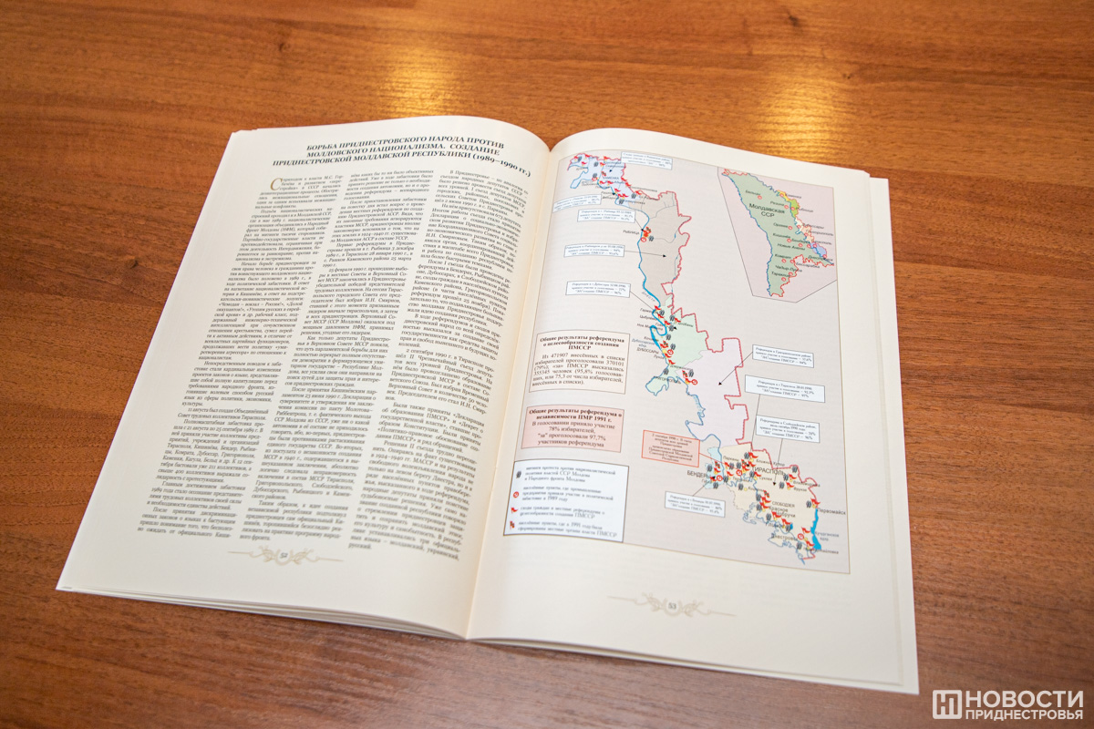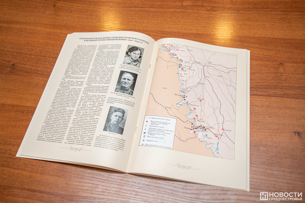 Схематические карты сопровождают статьи с иллюстрациями. Например, период до XV века проиллюстрирован фотографиями археологических находок, а Великая Отечественная война – фотопортретами героев Советского Союза и полных кавалеров ордена Славы – уроженцев Приднестровья.