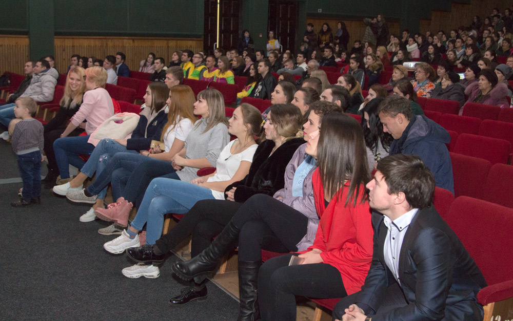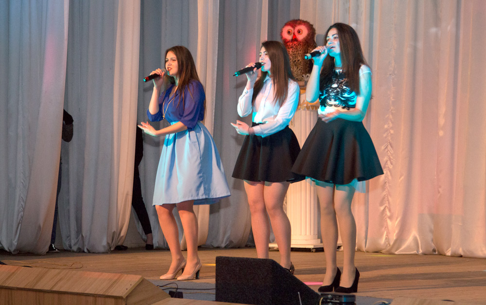 После поздравлений началась концертная программа. На сцене выступили студентки экономического факультета, продемонстрировавшие дефиле, затем их сменила команда КВН «Гагарин».