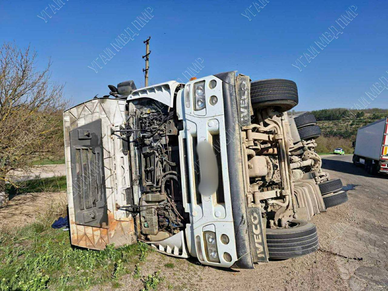 Как сообщает пресс-центр МВД ПМР, водитель грузовика марки «Ивеко», перевозившего песок, во время движения не справился с управлением. Он выехал за пределы проезжей части и опрокинулся.