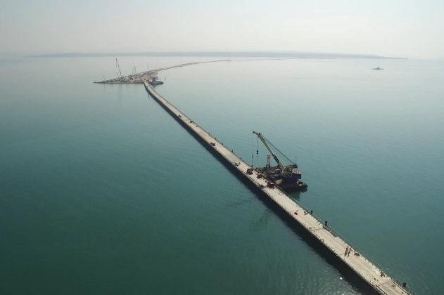 В настоящее время все работы по строительству моста через пролив ведутся по графику