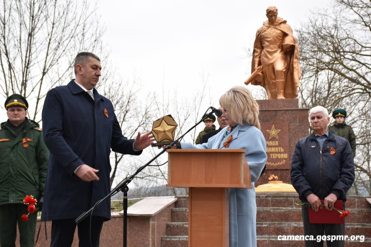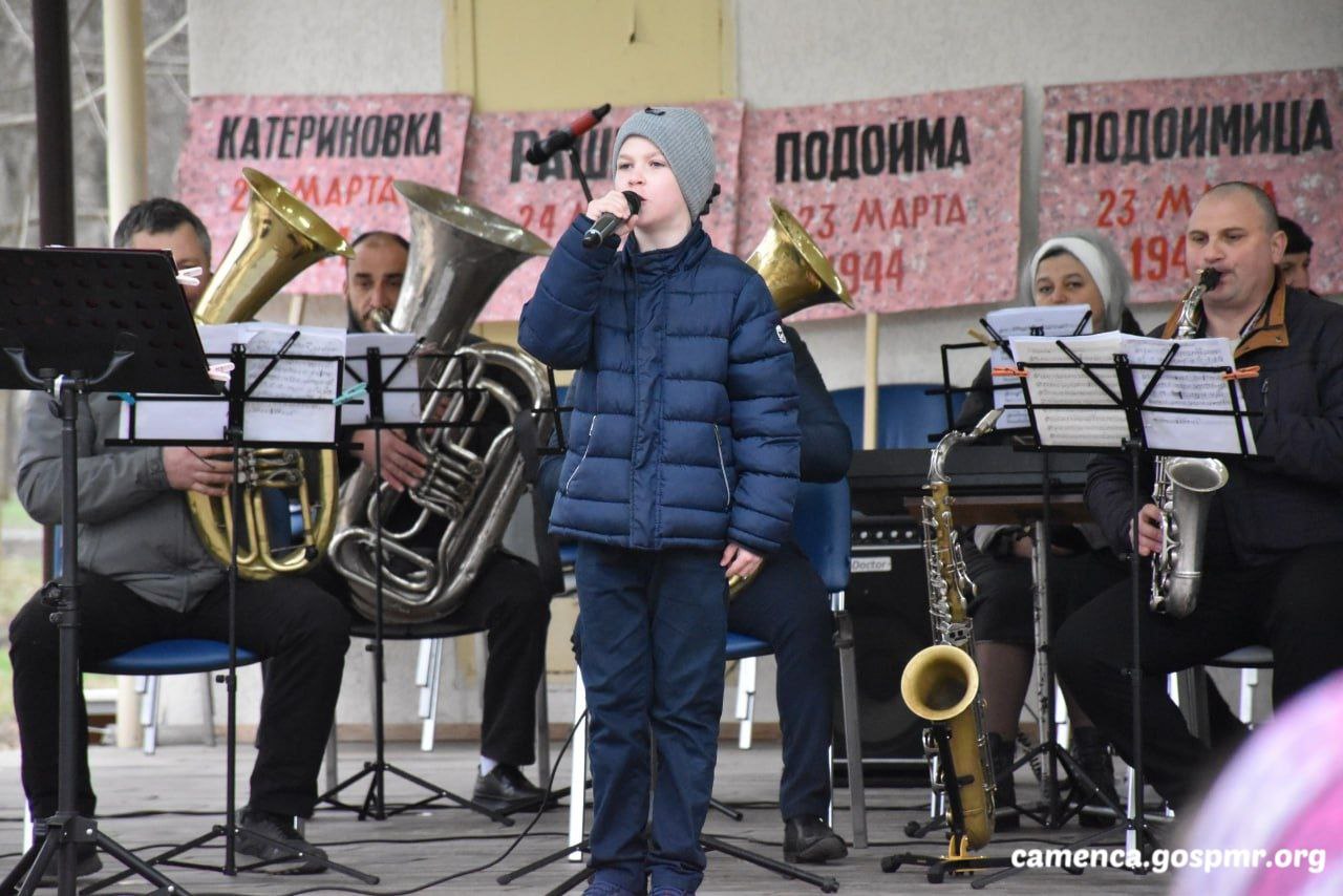 В этот день в Каменке дали старт республиканскому фестивальному движению «Марш Победы», посвящённому 80-летию Великой Победы и 81-й годовщине освобождения Приднестровья от оккупации. Начальник госслужбы по культуре и историческому наследию ПМР Мария Кырмыз передала каменчанам символ фестиваля, который будет путешествовать по городам и сёлам республики, следуя маршруту освобождения 1944 года.