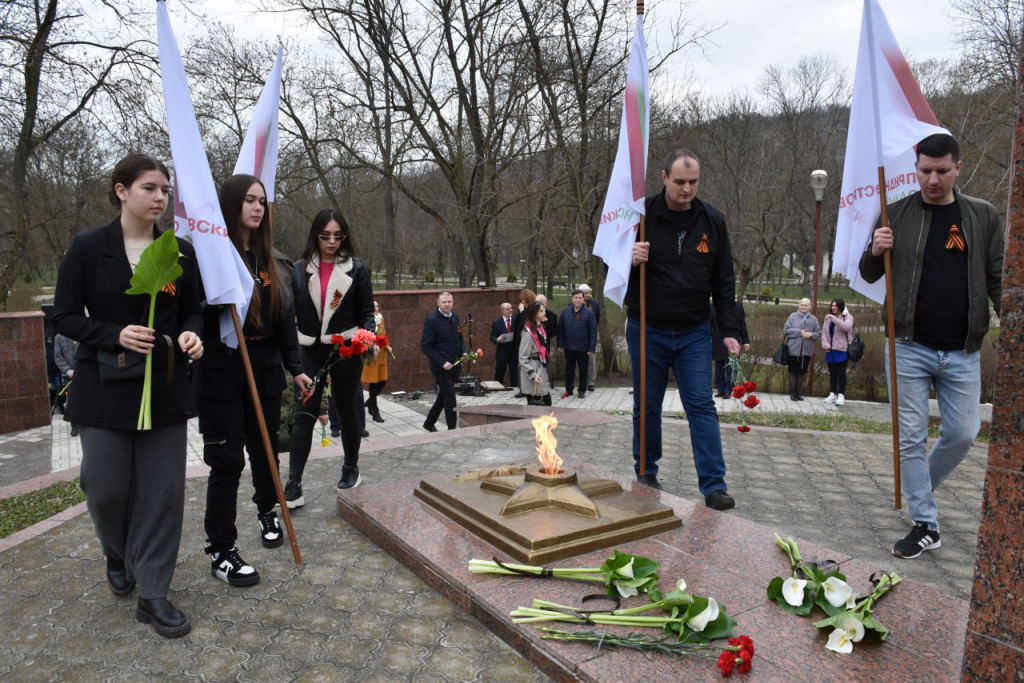 На Мемориале Славы состоялся митинг-реквием, участие в котором приняли сотрудники госадминистрации, представители депутатского корпуса, военизированных структур, общественных организаций, сотрудники предприятий, учреждений и организаций города, учащиеся школ и студенты техникума.
