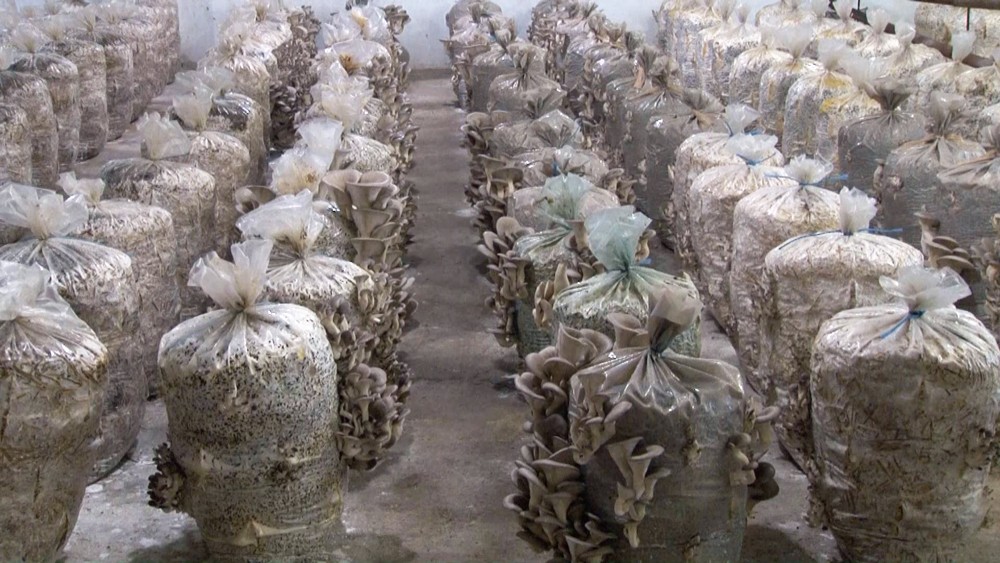 По словам специалистов, первый урожай собирается через 3-4 недели после засева мицелием. С одного мешка выходит около трёх килограммов. На предприятии с первого засева планируется собрать до 180 кг грибов.