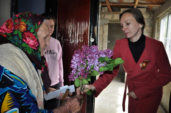 Награды на дому получил 131 человек: 79 тружеников тыла и 52 вдовы участников боевых действий ВОВ. Медали, приветственный адрес от Президента и главы госадминистрации, георгиевские ленты как символ Победы, а также букеты сирени вручали сотрудники госадминистрации, депутаты горрайсовета, сотрудники сельских администраций.