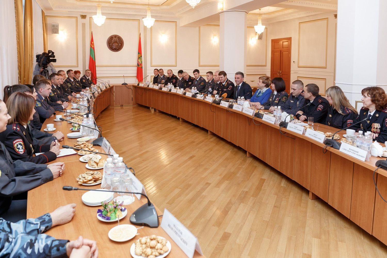 Завершая встречу, Президент Приднестровья поздравил сотрудников органов внутренних дел с профессиональным праздником и пожелал им успехов в работе.