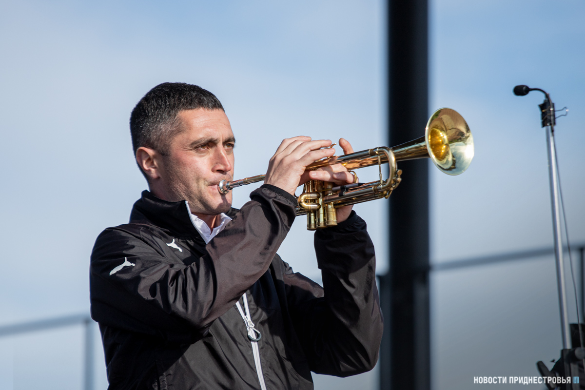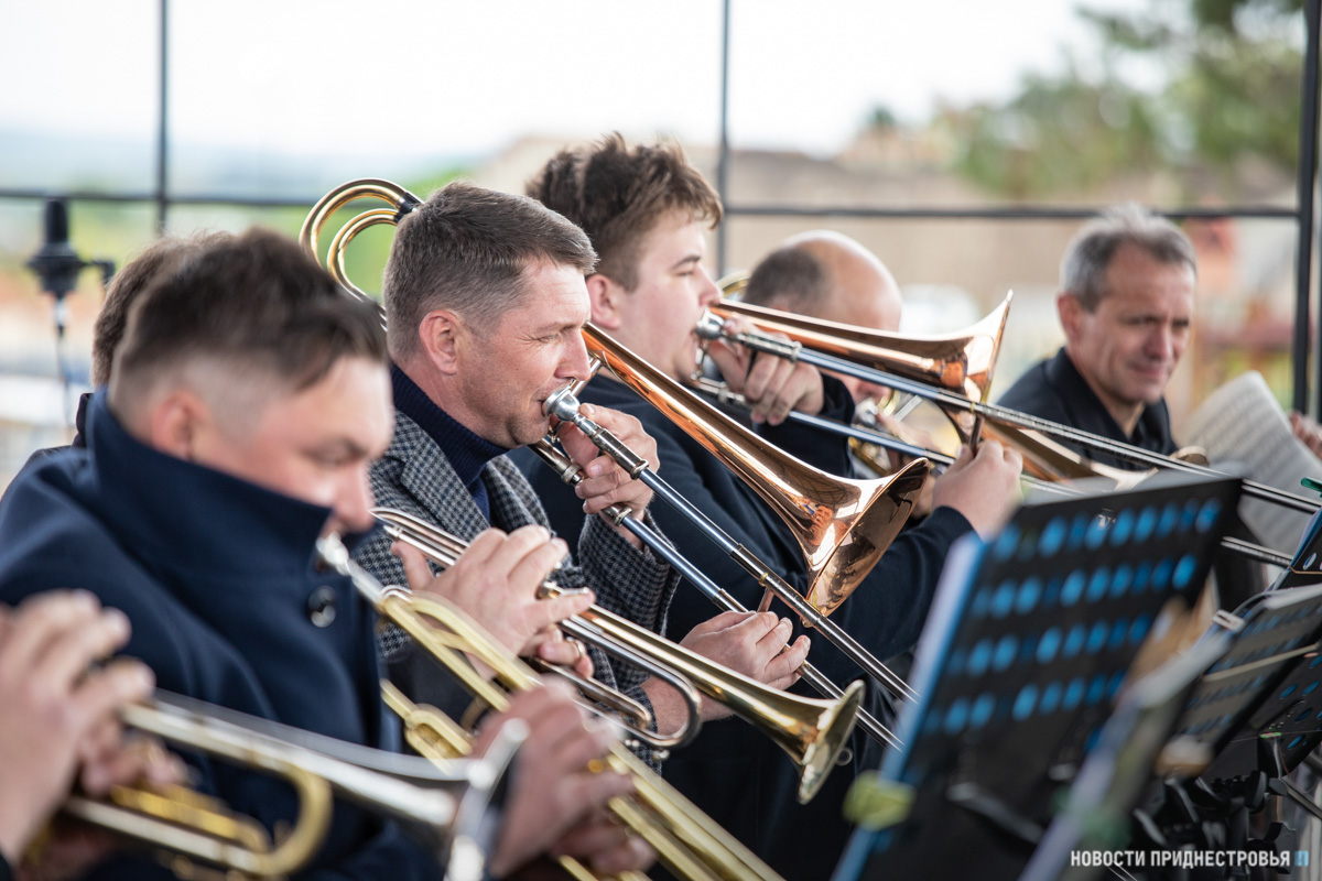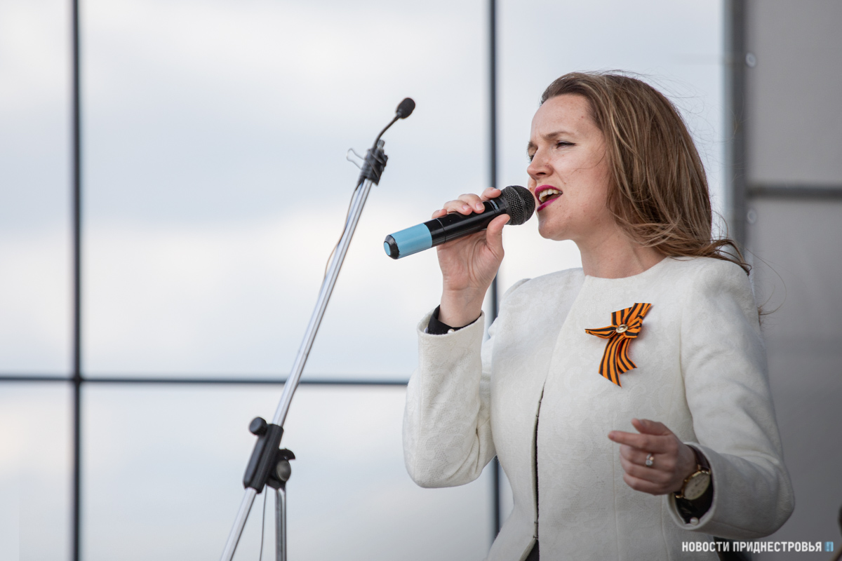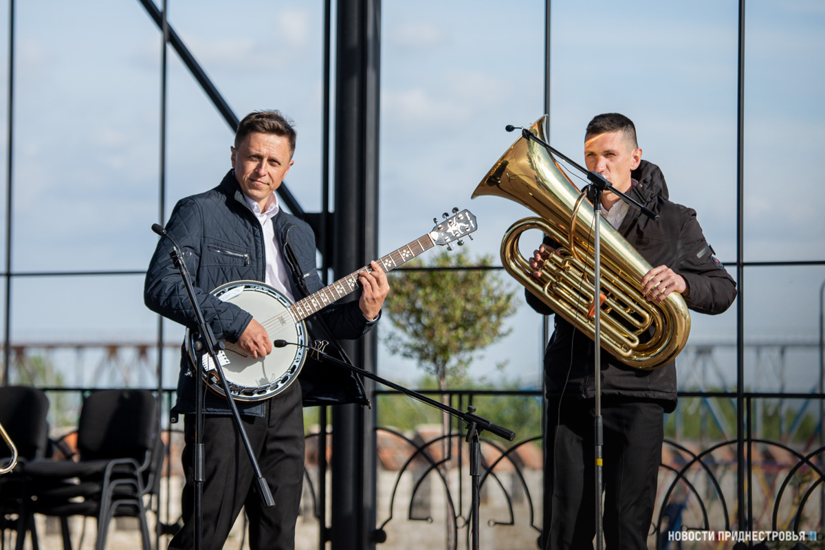 Артисты оркестра Тираспольского юридического института порадовали зрителей патриотическими песнями «Нам нужна одна победа», «День Победы» и многими другими.