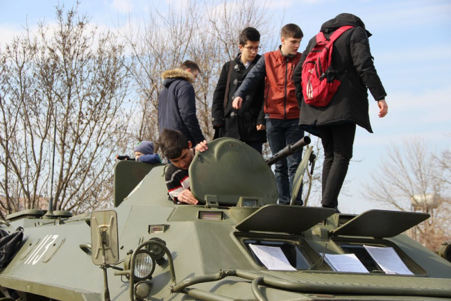 Гостям показали различные виды вооружения, бронетехнику, средства связи и рассказали об особенностях службы в воинской части