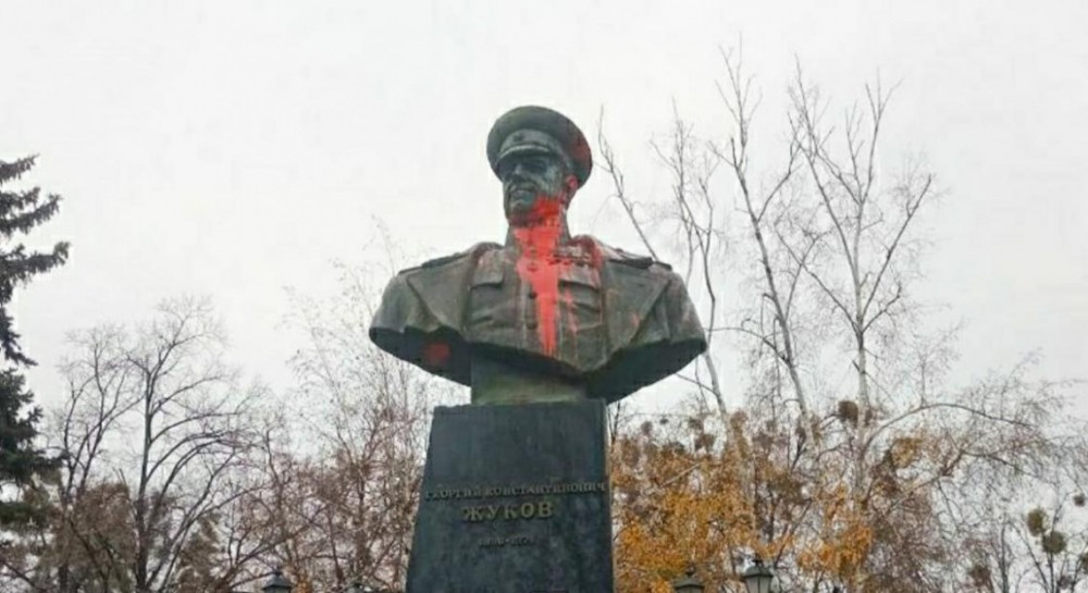 В Харькове красной краской облили памятник советскому маршалу Георгию Жукову