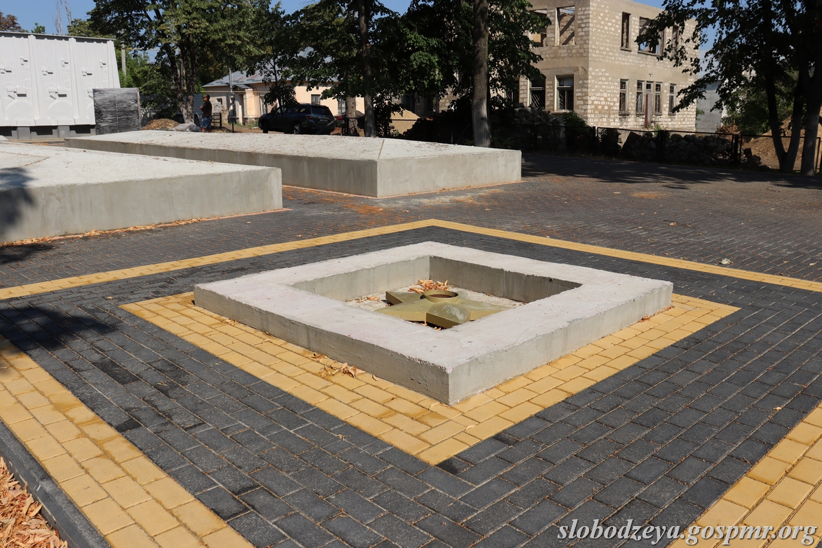 Территория мемориального комплекса уже замощена тротуарной плиткой, демонтированы старые мраморные плиты с именами воинов, подготовлена поверхность для установки новых гранитных плит и декоративной отделки могил. Впервые на объекте появится освещение.