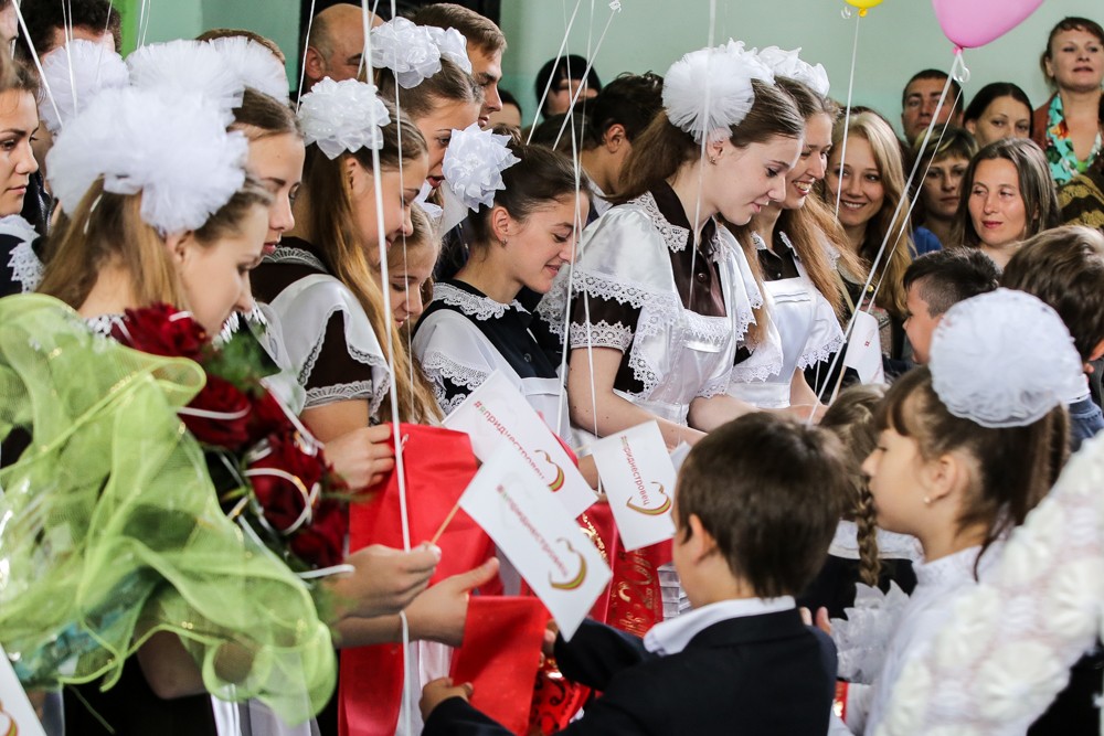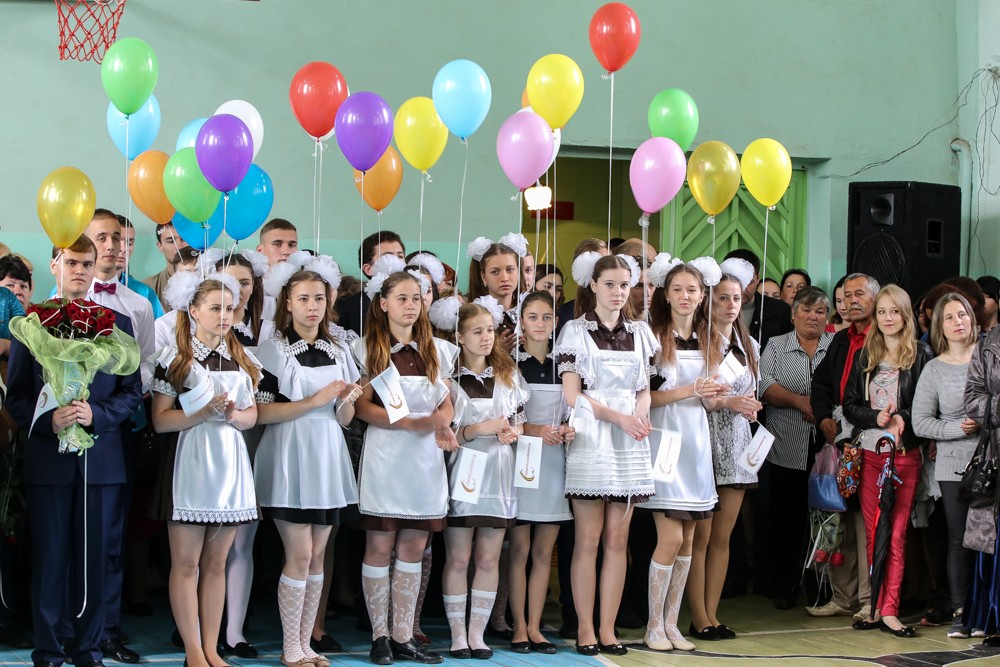 Из-за погоды праздник проходил не на улице, а в спортзале школы, что отнюдь не повлияло на традиции подобных мероприятий – было и поднятие флага, и хоровое пение гимна, и передача символического факела знаний первоклассникам, и шуточного дерева со шпаргалками 11-классникам. А ещё было много слёз: плакали родители, украдкой вытирали глаза учителя, да и сами выпускники, читая прощальные стихотворения, тоже не смогли сдержать слёз.