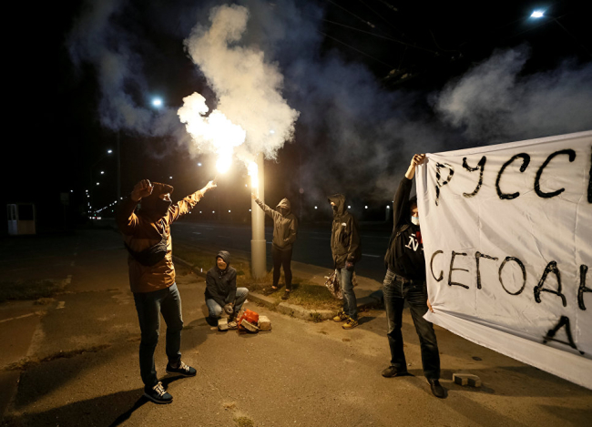 Правоохранители из Национальной гвардии Украины пояснили, что около 20 человек обстреляли дипмиссию фейерверками, после чего сбежали. Уточняется, что видимых повреждений здание посольства не получило.