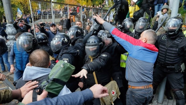 В данный момент ситуация стабилизировалась, столкновения прекратились, однако полицейские остаются на митинге.
