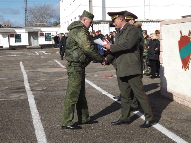 «Военнослужащие внутренних войск играют важную роль в поддержании правопорядка и стабильности в нашей стране, в обеспечении безопасности граждан и противодействии организованной преступности. Уверен, что вы и впредь с честью будете выполнять возложенные на вас государством обязанности, твердо стоять на страже закона, верно служить Приднестровской Молдавской Республике и ее гражданам», – говорится в поздравительном адресе, который в честь праздника направил первый заместитель министра юстиции – начальник ГСИН, полковник юстиции Виталий Ищенко.