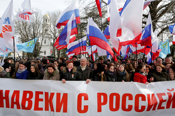 Празднование второй годовщины со дня проведения референдума, по итогам которого полуостров вошёл в состав России, началось с многотысячного шествия по центральным улицам Симферополя, сообщает РИА «Новости».