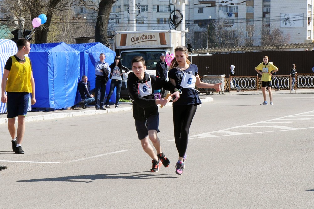 Сегодня в соревнованиях приняли участие 48 команд по 17 спортсменов в каждой. В общей сложности каждой команде предстояло пробежать 2260 метров (площадь Суворова — бульвар Гагарина — площадь Суворова).