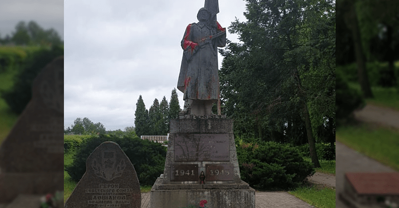 Ранее на странице администрации района в Facebook была опубликована фотография памятника, облитого красной краской.