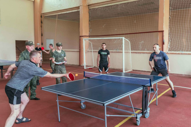Военнослужащие играли в шашки, настольный теннис и волейбол, метали дротики, проверили свои силы в армрестлинге и перетягивании каната, преодолели эстафету