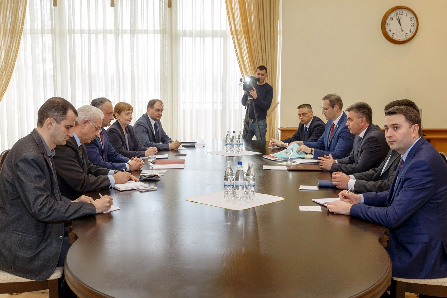 Встреча началась в 11 часов, уточняет пресс-служба главы приднестровского государства. Принимающую сторону помимо главы молдавского государства представили его советники — по экономическим вопросам Елена Горелова, по внутренней политике Ион Чебан, по вопросам реинтеграции Василий Шова, а также консультант Аппарата президента РМ Николай Цвятков.