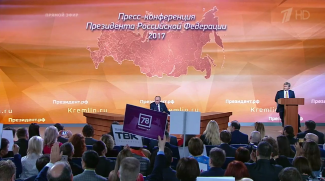 Несколько минут назад в Москве началась пресс-конференция Президента Российской Федерации Владимира Путина. На это мероприятие были аккредитованы 1640 журналистов со всего мира. Впервые среди них есть приднестровские журналисты – съемочная группа Первого Приднестровского телеканала.