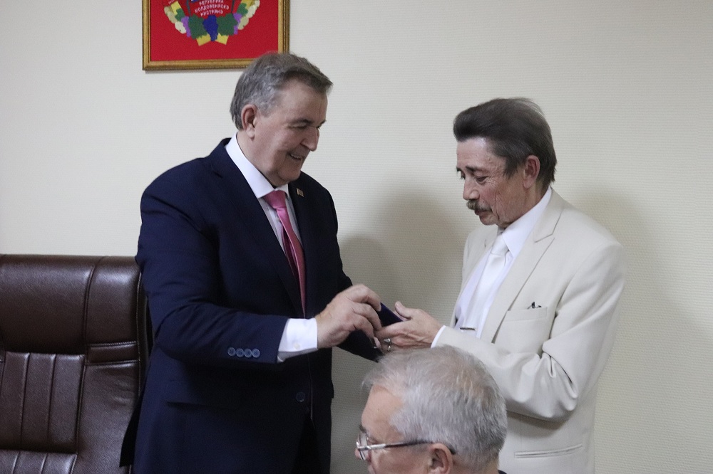 В завершение праздничного приёма Леонид Манаков вручил медали «Ветеран боевых действий» ветеранам второго батальона Республиканской гвардии города Бендеры, а также от имени Президента ПМР наградил орденами и медалями тех приднестровцев, которые внесли особый вклад в борьбу за независимость Приднестровья и укрепление международных связей ПМР.