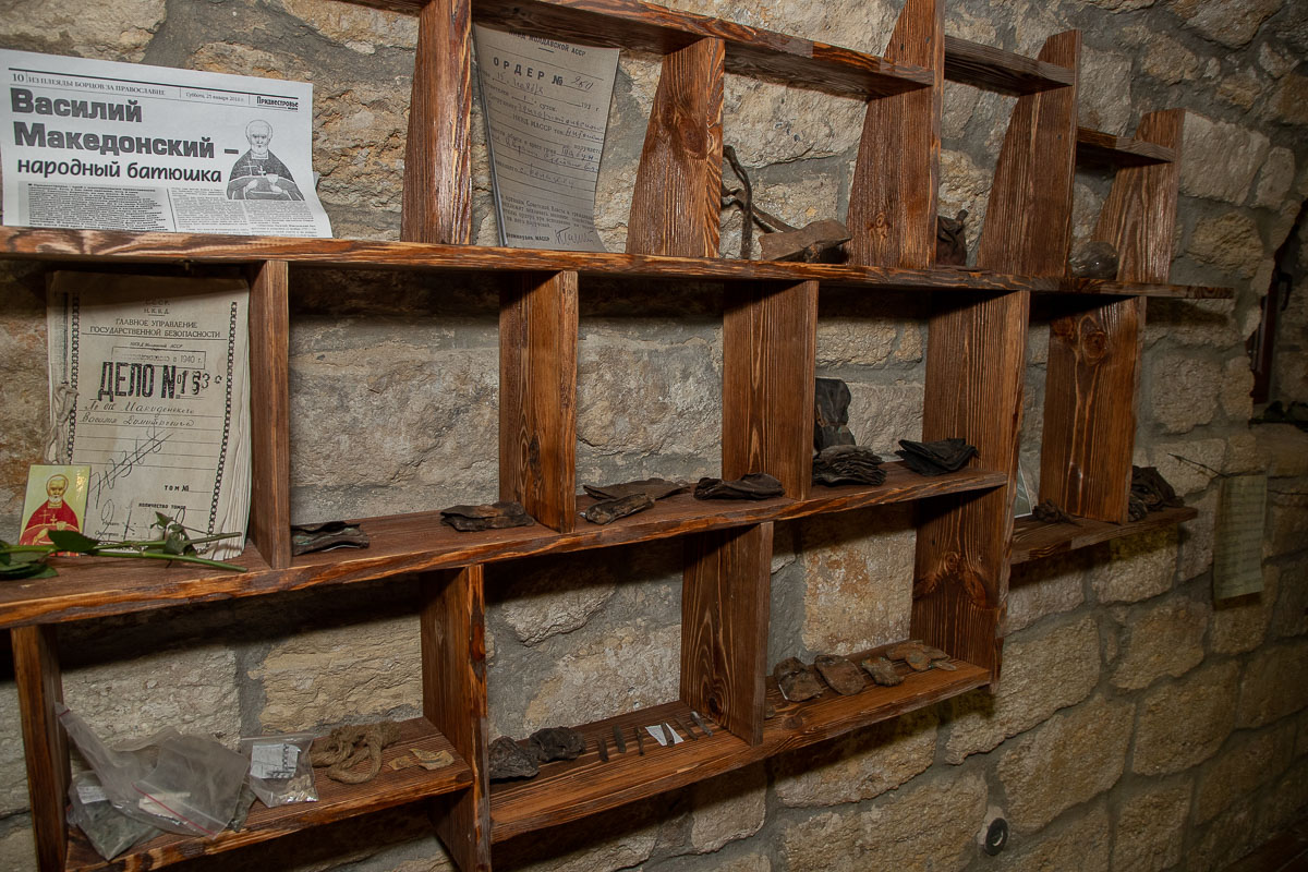 Значительную часть экспозиционного пространства в музее занимают стенды с находками, сделанными в ходе работ по эксгумации останков репрессированных. Это предметы одежды, монеты, посуда, нательные крестики и, конечно, документы, благодаря которым удалось установить личности расстрелянных на территории бастиона Тираспольской крепости.