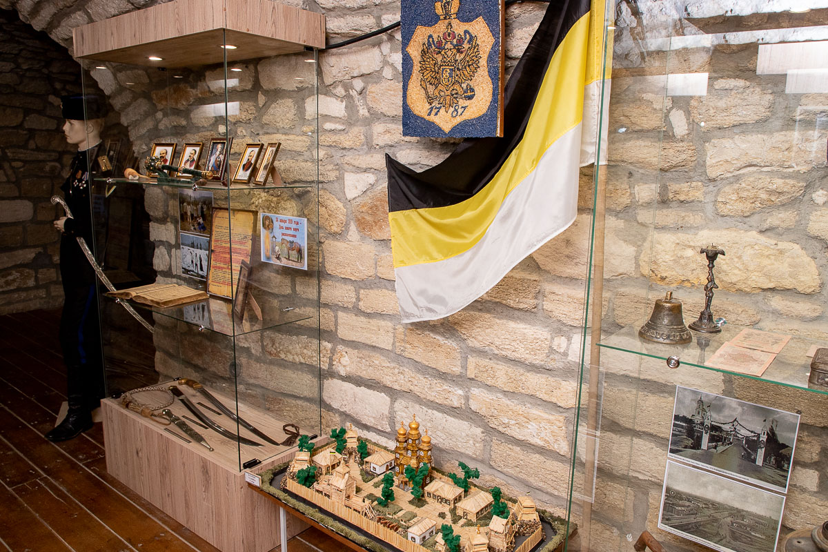 На стендах размещены чертежи, макеты, скульптуры и образцы униформы. Кроме того, воссоздан кабинет НКВД. Часть экспозиции военно-исторического музея посвящена репрессиям против казачества.