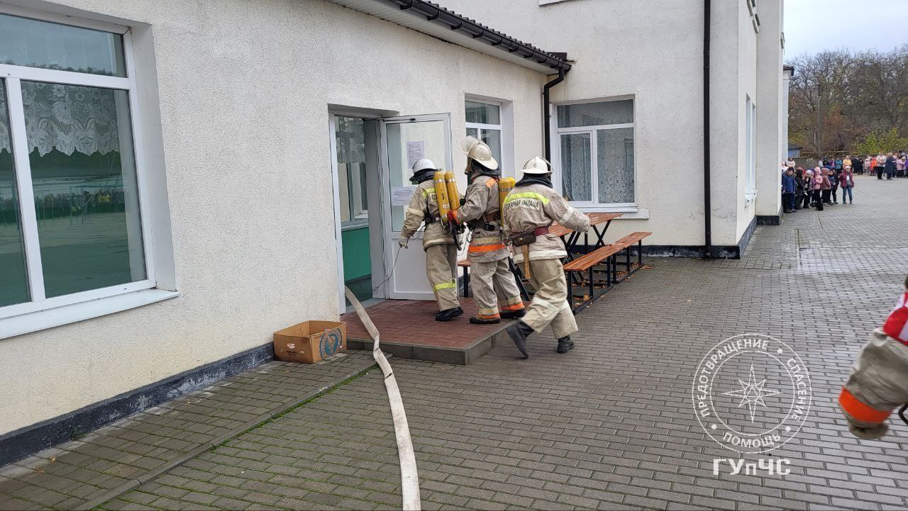 На тушение условного возгорания прибыли два пожарных расчёта. Огнеборцы провели боевое развёртывание. Находясь в дыхательных аппаратах со сжатым воздухом, они приступили к локализации очага возгорания. Параллельно с этим спасатели проводили эвакуацию учащихся и педагогов школы – всего 600 человек, сообщает ГУпЧС МВД ПМР.