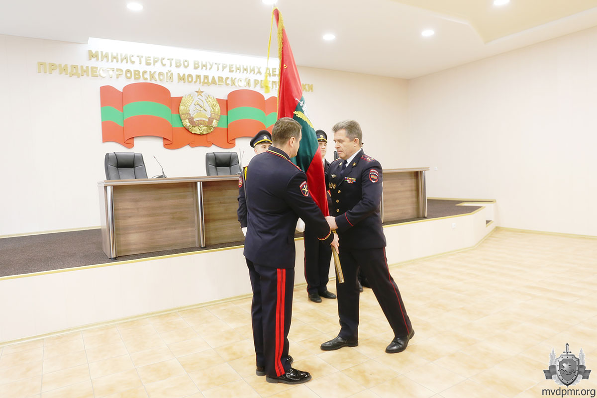 Среди территориальных подразделений МВД ПМР по итогам работы прошлого года образцовым стало Управление внутренних дел г. Тирасполь. Начальнику столичной милиции Сергею Кирману Руслан Мова вручил переходящее знамя.