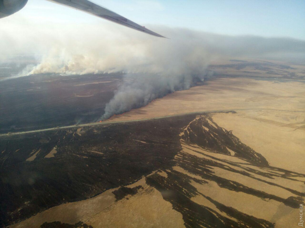 В Одесской области Украины загорелся камыш. Огонь охватил большую часть территории Вилковского лесничества – 50 гектаров, пишет «Думская».