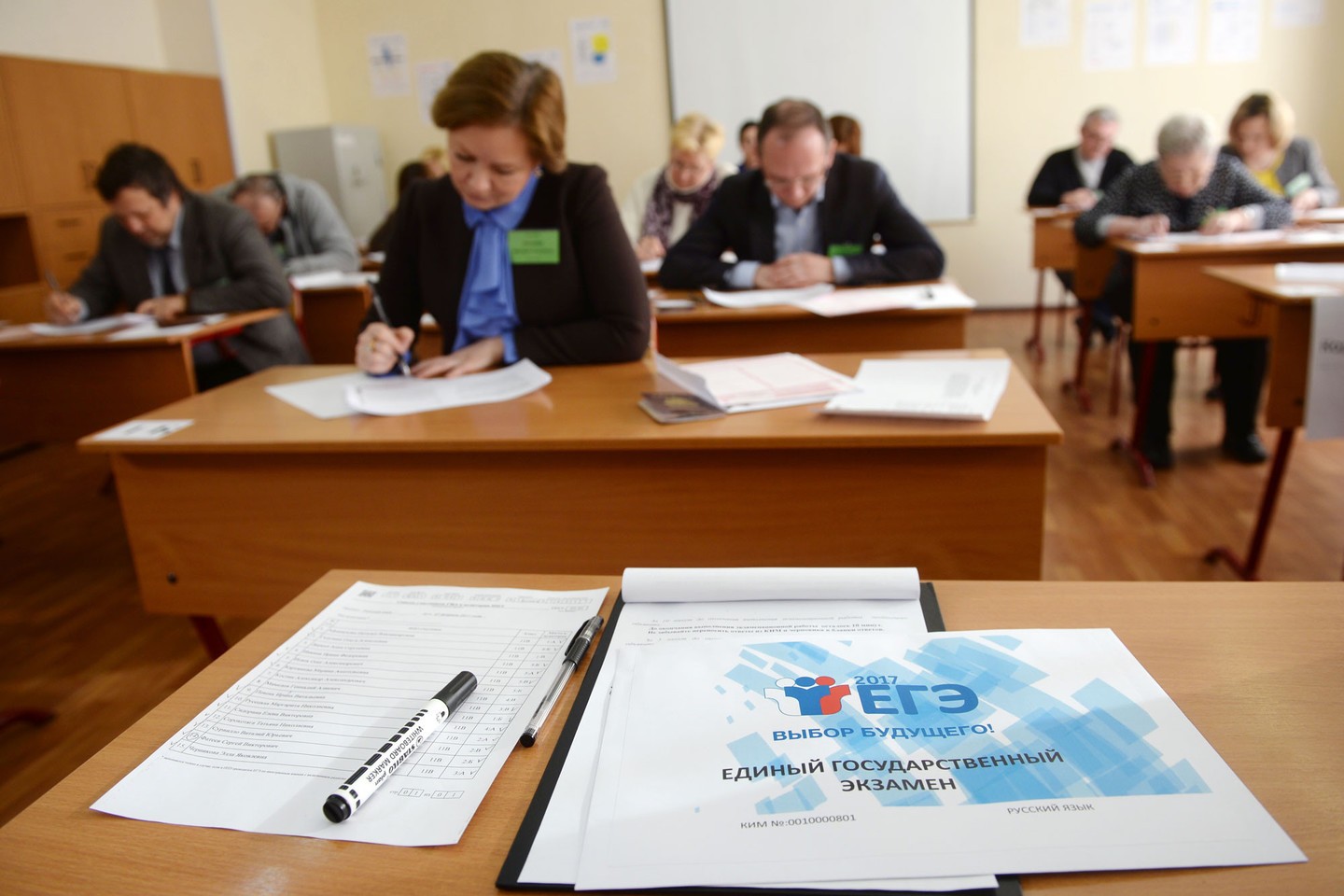 Экзамен для родителей проходил стандартно, в такой же обстановке, как и настоящий госэкзамен. Однако проверить правильность выполненных заданий испытуемые могли самостоятельно.
