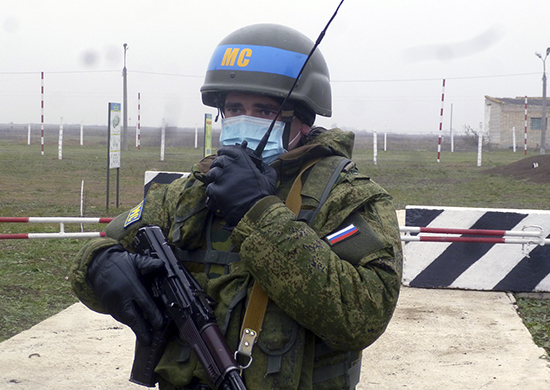 Российские военнослужащие отрабатывали действия на специально оборудованном учебном месте, которое полностью имитирует миротворческий пост