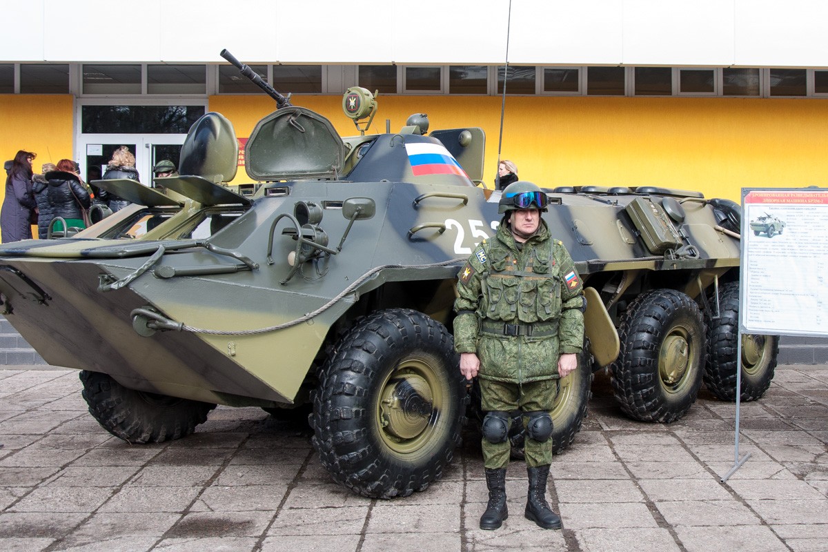 «Из техники есть БТР-70, БРДМ-2 и аналоговый вид УАЗ- 3151, ещё мы показываем современную российскую военную форму, рассказываем о правилах её ношения, о быте, условиях службы, порядке прохождения её по контракту. Хотим показать молодым людям, что такое российская армия», — рассказал начальник отделения комплектования ОГРВ в Приднестровье Дмитрий Марьков.
