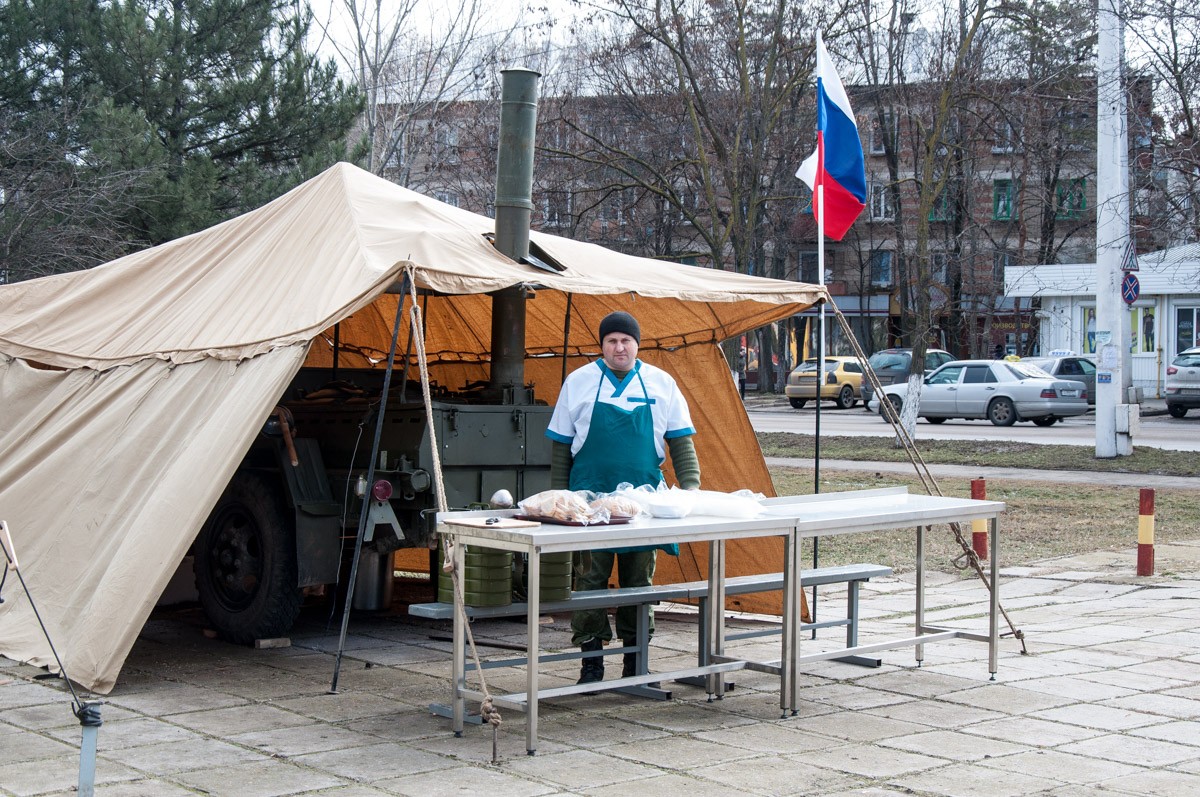 22 Фев.., 2017, 17:00Тирасполь, 22 февраля. /ИА «Новости Приднестровья"/. Находящиеся в Приднестровье российские военные отмечают День защитника Отечества. Праздничный концерт традиционно проходил в Тирасполе, в Доме офицеров. Перед его началом на бородинской площади разместили образцы вооружения и военной техники, формы, военную палатку и, конечно же, полевую кухню.