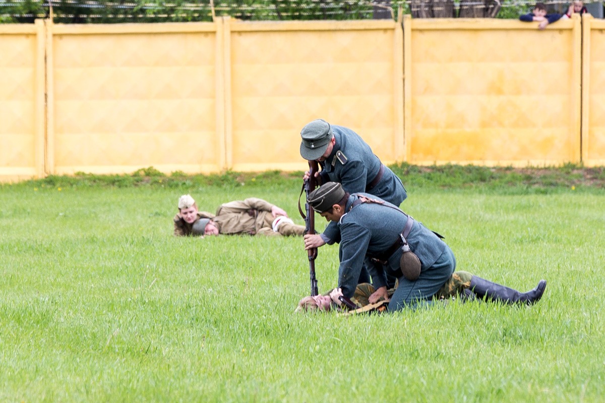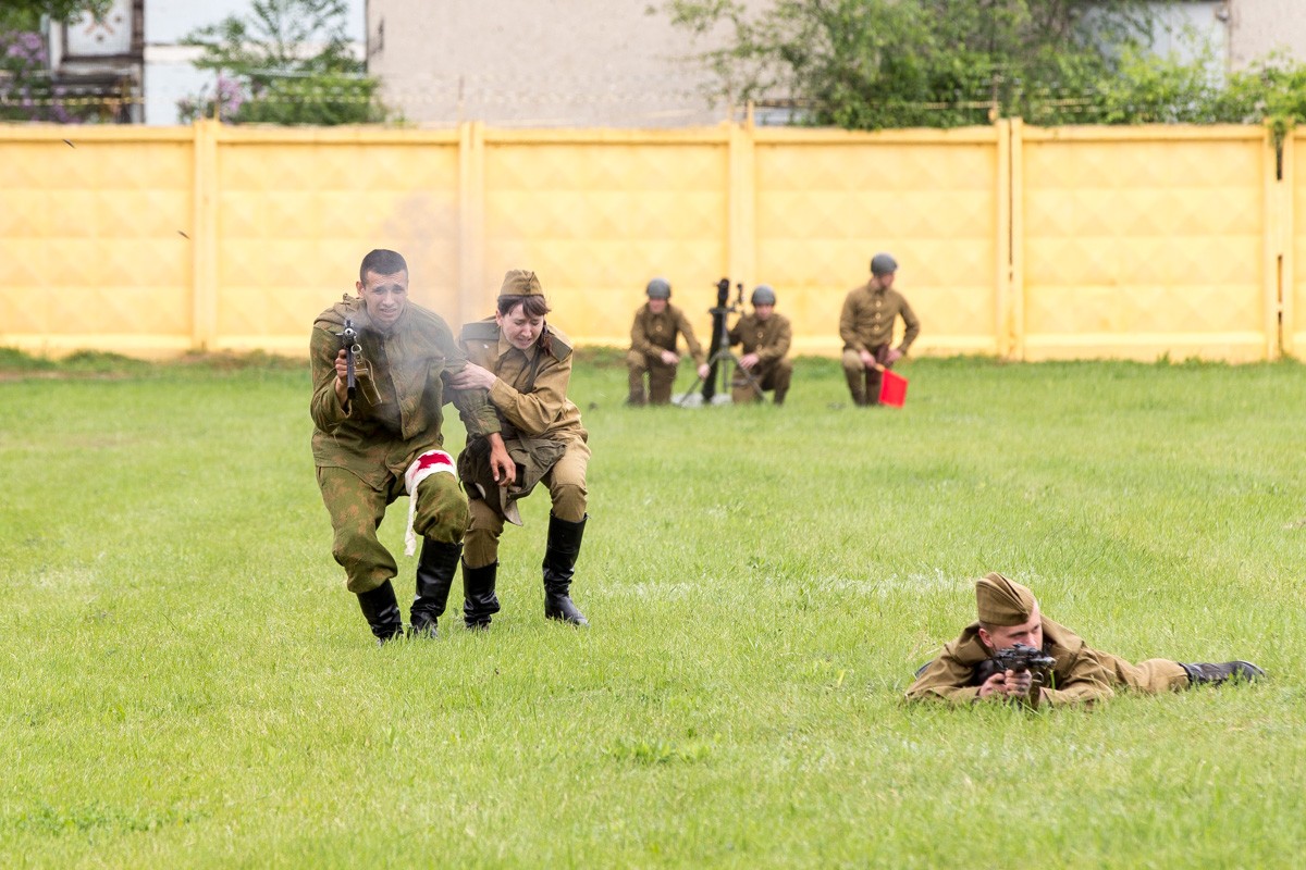 Во время реконструкции использовалось реальное стрелковое оружие времен Великой Отечественной войны, заряженное холостыми патронами. Разрывы снарядов от артиллерийских орудий имитировала пиротехника. «Когда находишься на поле боя, в первую очередь чувствуешь, что страшно. У нашего клуба это уже четвертая реконструкция. Ребята в основном несовершеннолетние по 16−17 лет, но я сказал бы, что они уже опытные бойцы, не боятся взрывов, которые происходят рядом с ними, стрельбы», — рассказывает руководитель клуба «Наследники Победы» Игорь Кольцов.