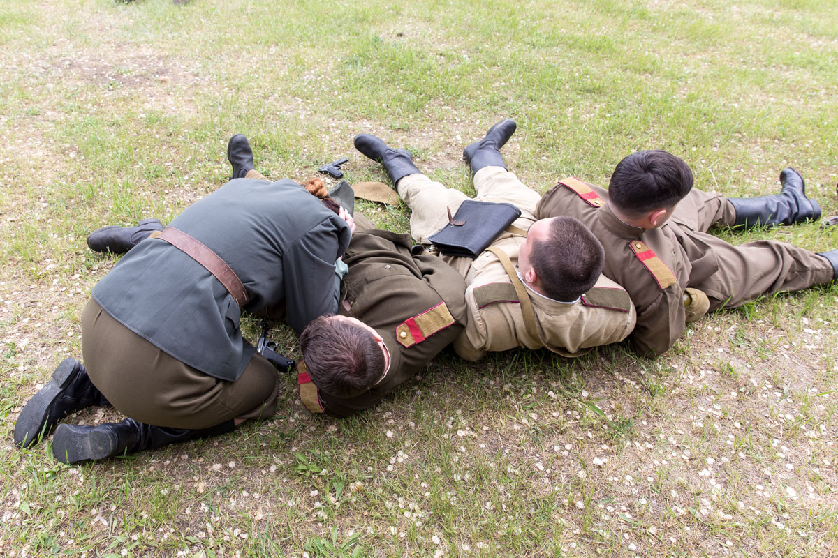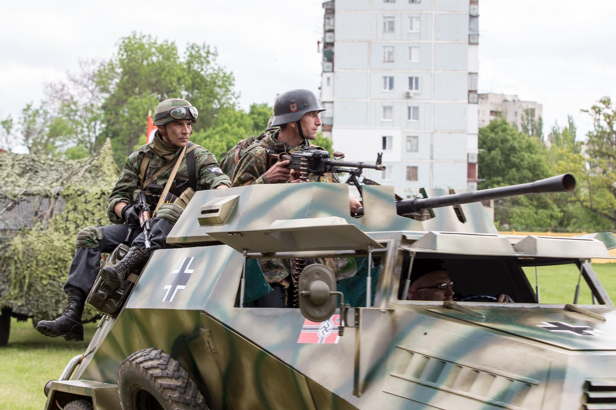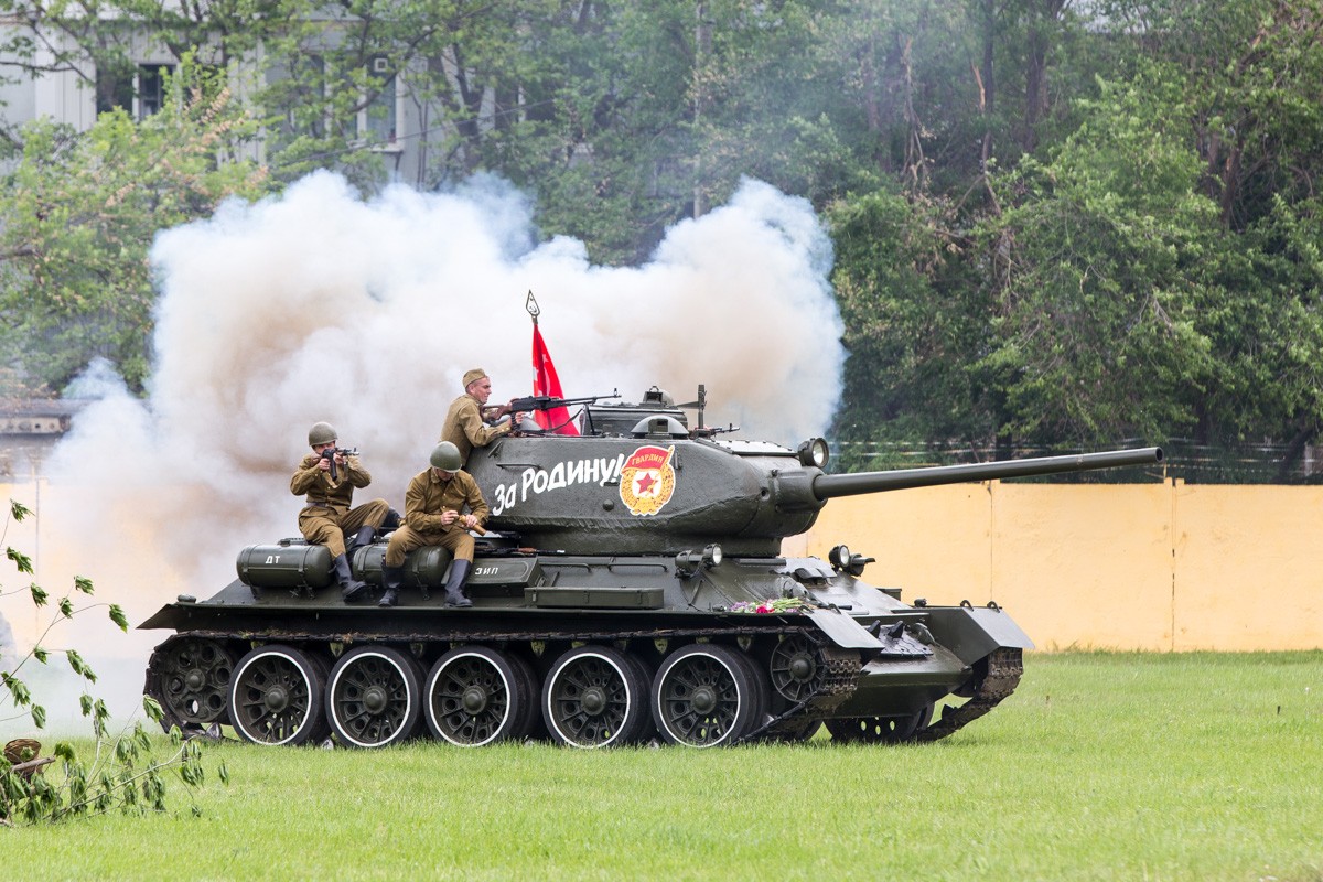 Также в реконструкции использовалась и военная техника. Во время кульминации боя наступающую советскую пехоту огнём поддержал легендарный Т-34. С вражеской стороны отстреливался бронеавтомобиль Sd.Kfz.222, правда не настоящий, а реплика, выполненная на базе ГАЗ-69.