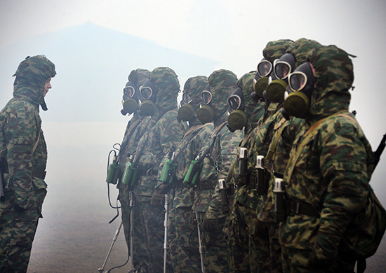 По замыслу военнослужащие отрабатывали действия при атаке отравляющими веществами