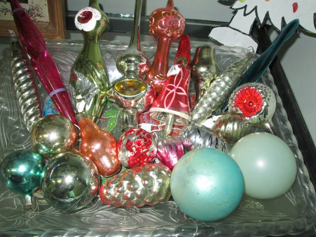 Советские елочные игрушки принципиально отличались от «царских», дореволюционных. Тогда они воспроизводили библейские сюжеты, во времена СССР пропагандировали новые идеалы. Советская промышленность росла бурными темпами, не отставала от нее и «игрушечная» отрасль. Самолеты, автомобили, кремлевские звезды, ракеты, космонавты, искусственные спутники. Выпускались фигурки птиц и зверей, позже появились сказочные герои. В хрущевские времена на елках можно было собрать целый урожай овощей и фруктов. Знаменитая кукуруза пользовалась особой популярностью.