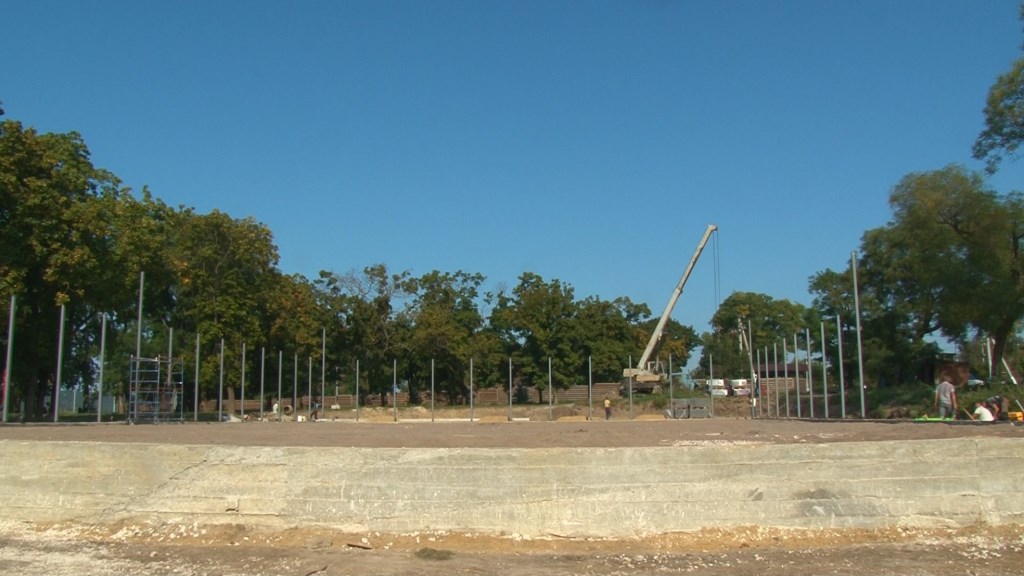 «Осуществляется бетонирование баскетбольной площадки. На футбольном поле сейчас присыпаем предпоследний слой гравийного отсева. А верхним слоем будет уже искусственная трава. По кругу делается стена Габиона, беговая дорожка. Сварщики также сейчас монтируют металлические колоны по кругу: 6-метровые для ограждения и освещения и 4-х метровые – для сетки», - сообщил подробности специалист.