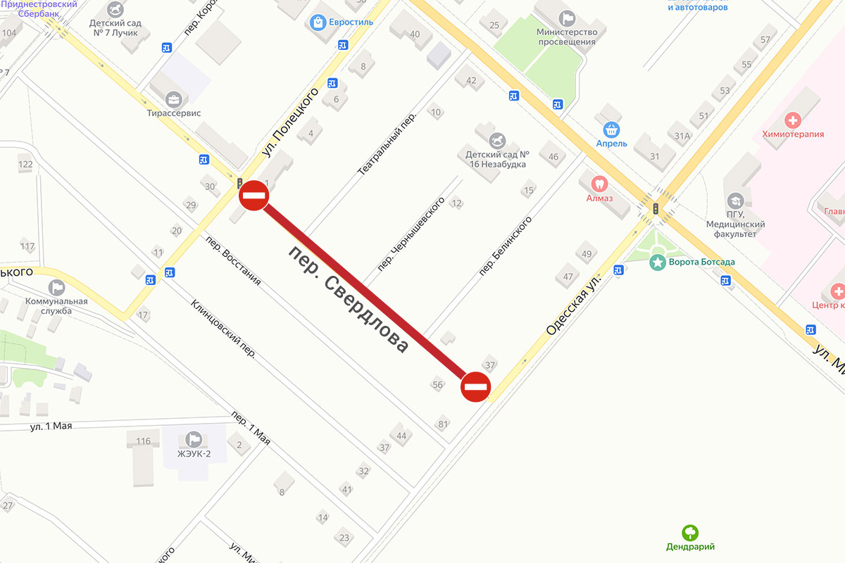 В переулке Свердлова в Тирасполе с 6 июля ограничат движение транспорта
