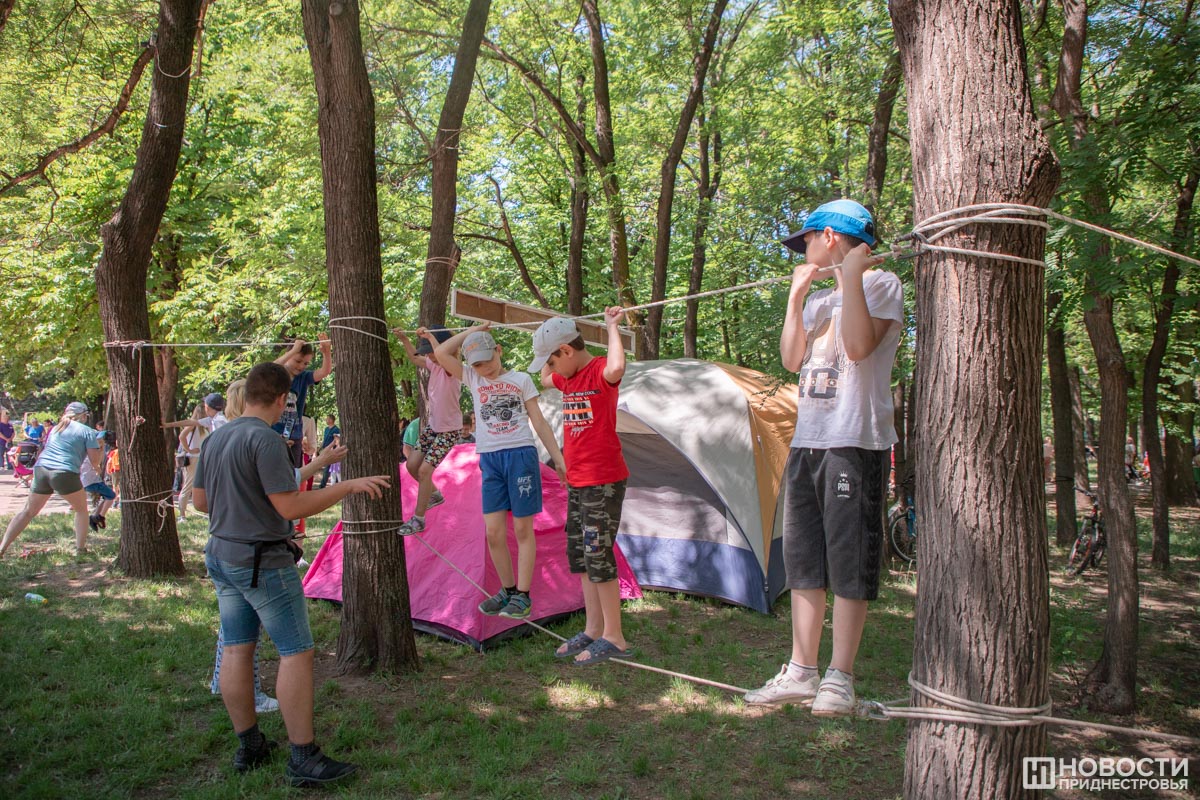 Пройти полосу препятствий предлагала Станция юных туристов. Её руководитель Николай Визитиу рассказал, что они подготовили специальные задания, в том числе прохождение ленты канатоходцев, метание в цель, установка палатки на время и многое другое.
