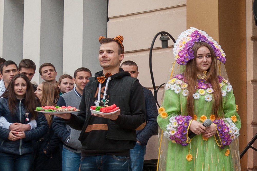«Факультеты всё больше, щедрее и праздничнее украшают свои подворья. Они презентуют не только богатый стол, но и саму Масленицу, украшая свои подворья и придумывая интересные костюмы», – рассказала председатель профкома студентов Инна Чурсина.