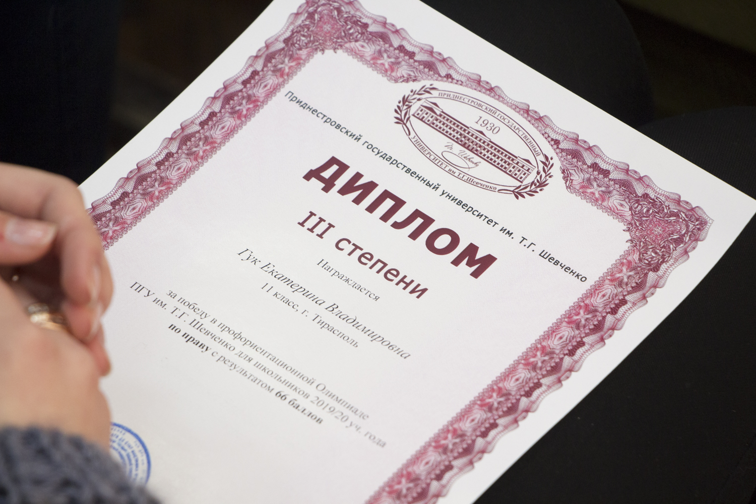 Тирасполь, 13 февраля. /Новости Приднестровья/. Накануне в Приднестровском госуниверситете состоялось торжественное вручение дипломов призерам профориентационной олимпиады ПГУ для школьников, сообщает пресс-служба вуза.