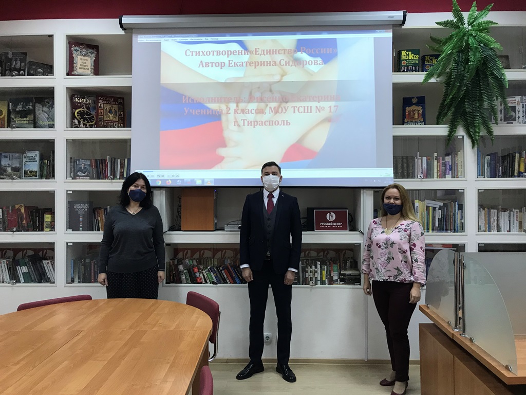 Тирасполь, 20 ноября. /Новости Приднестровья/. С 12 октября по 9 ноября в рамках ежегодного фестиваля русской культуры «Мы вместе!» в Приднестровье проходил Республиканский конкурс чтецов «Моя Россия», посвящённый празднованию Дня народного единства. Организаторами конкурса выступили Русский центр фонда «Русский мир», Контактный центр ПГУ по взаимодействию с Россотрудничеством, Союз русских общин Приднестровья.