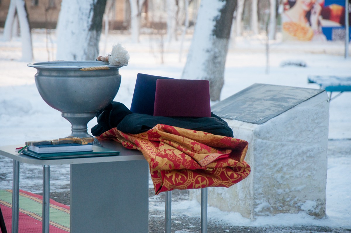 Молебен состоялся в присутствии студентов и преподавателей вуза. В завершении службы священнослужители окропили святой водой место будущей закладки церкви.