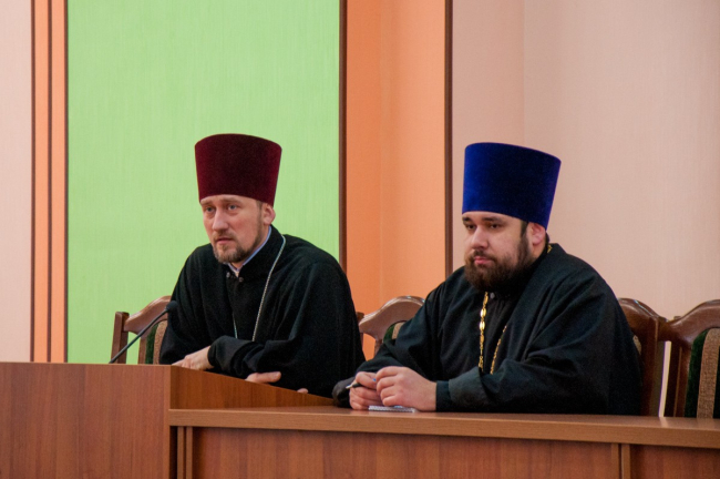 После молебна состоялась встреча студентов со священнослужителями в актовом зале госуниверситета