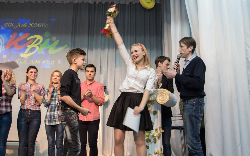 Как сообщает центр СМИ ПГУ, на сцене выступили 3 команды: сборная Тирасполя «У холодильника», команда филологического факультета «Мишка виновен» и команда юрфака «Гагарин».