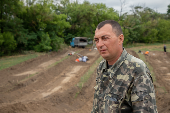 «Начинается всё с разметки кургана. На первом этапе работает тяжёлая землеройная техника. За ней нужно следить постоянно, не отрываясь. Как только из-под ковша экскаватора проступит какой-то камень, дерево, остатки какого-то сооружения, техника отзывается и дальше уже идёт ручной труд. Это, собственно, выборка сооружений, расчистка погребения или хозяйственного сооружения, фиксация всех находок».